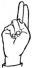 На ћирилици написано КОСТАДИН ЧАКАРАНОВИЋ састоји се из 19 слова [?]. Исписано ћириличном једноручном азбуком за глувонеме: